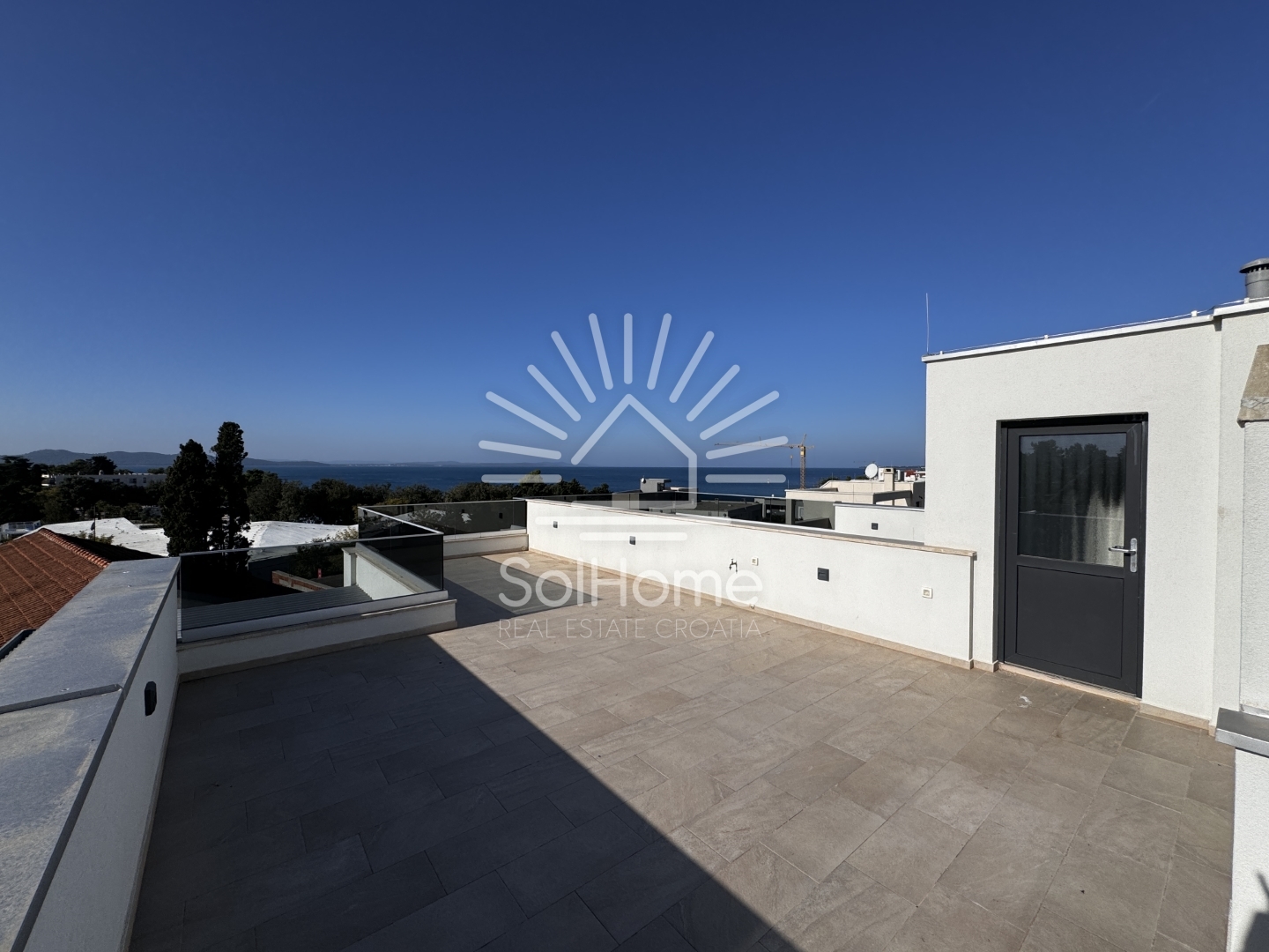 A luxurious, brand-new apartment for sale in Zadar, Borik, located just 100 meters from the sea. The apartment covers 93 m² and offers a perfect combination of modern design, quality, and functionality, along with a roof terrace offering a stunning view.