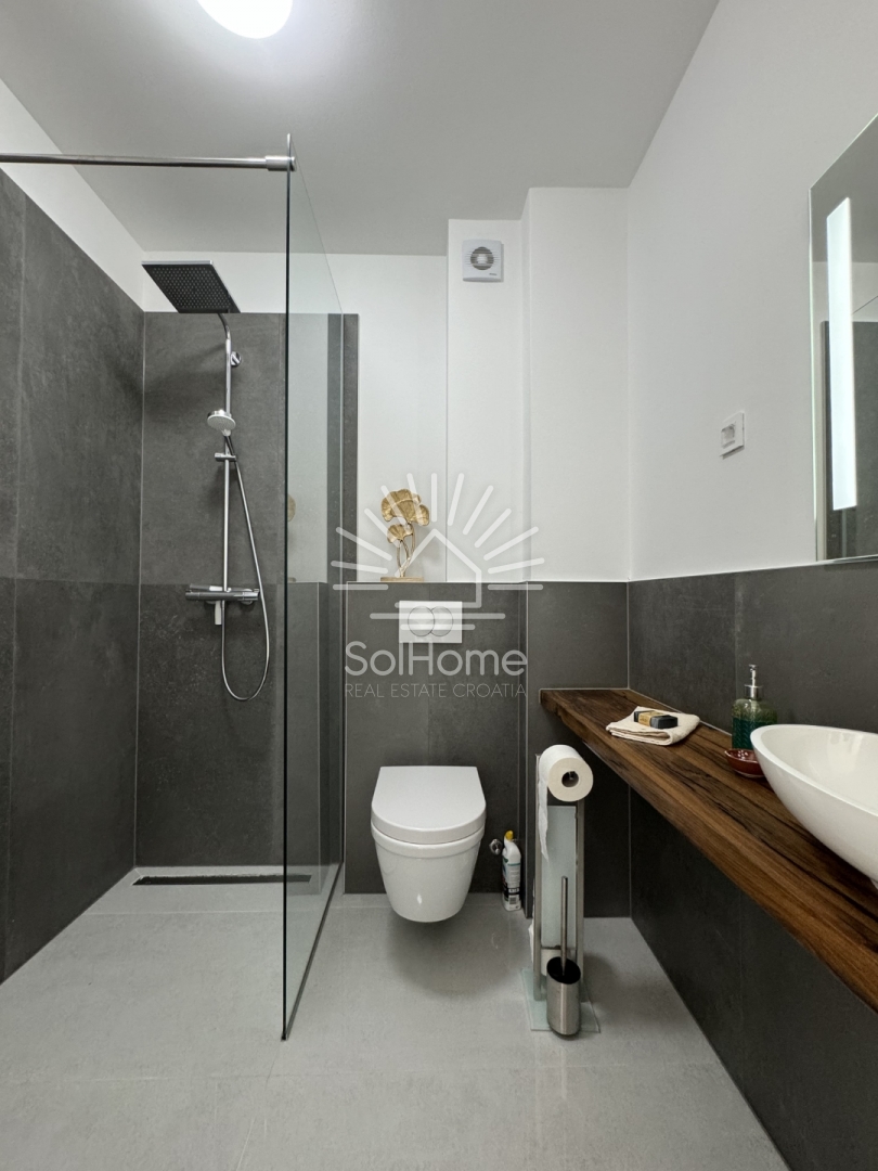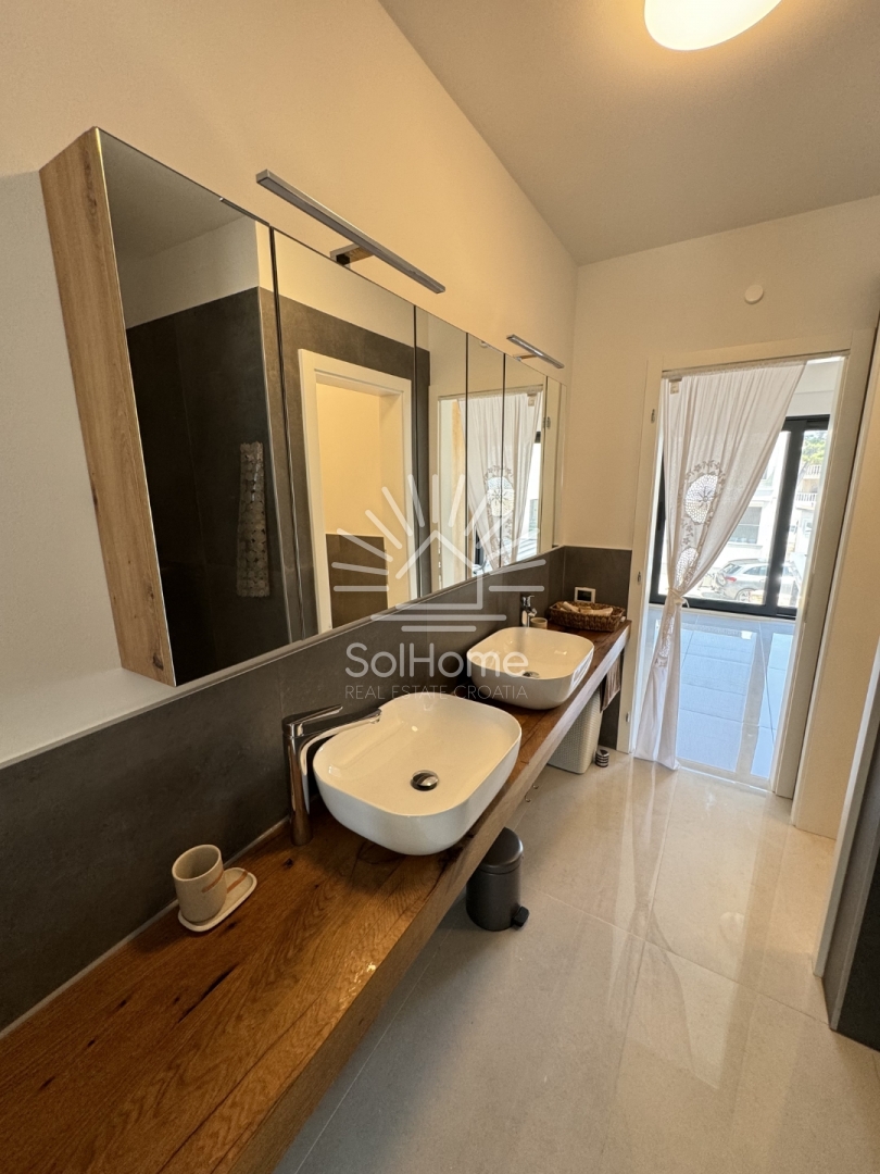 Terasa, Kuća uz more, Namješteno, Pogled na more, Vila, Broj etaža: dvokatnica, Tip kuće: dvojna, Novogradnja
