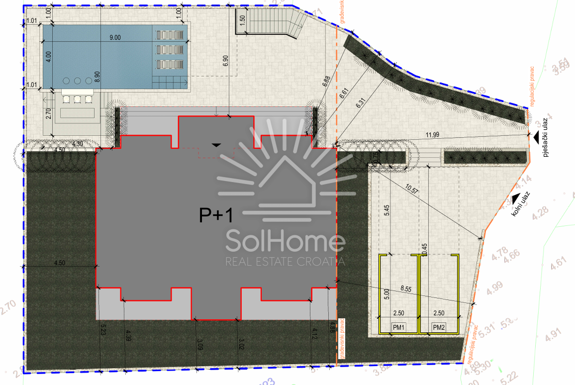 Projekt je predan za ishođenje građevinske dozvole, što omogućuje odmah započeti gradnju. Također nudimo opciju izgradnje ”ključ u ruke” u suradnji s našom provjerenom građevinskom tvrtkom.