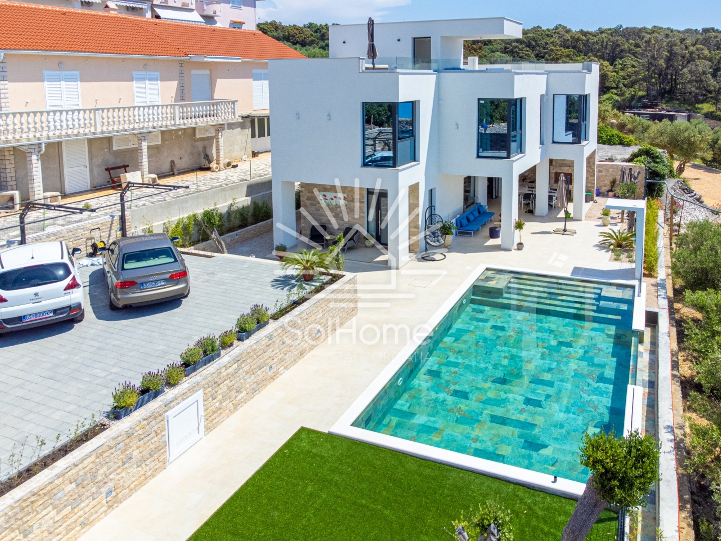 Vila izgrađena 2022. godine sastoji se od prizemlja, kata i impresivne krovne terase. Potpuno je namještena i uređena s mnogo pažnje prema detaljima, te oduševljava privatnošću i modernim dizajnom.