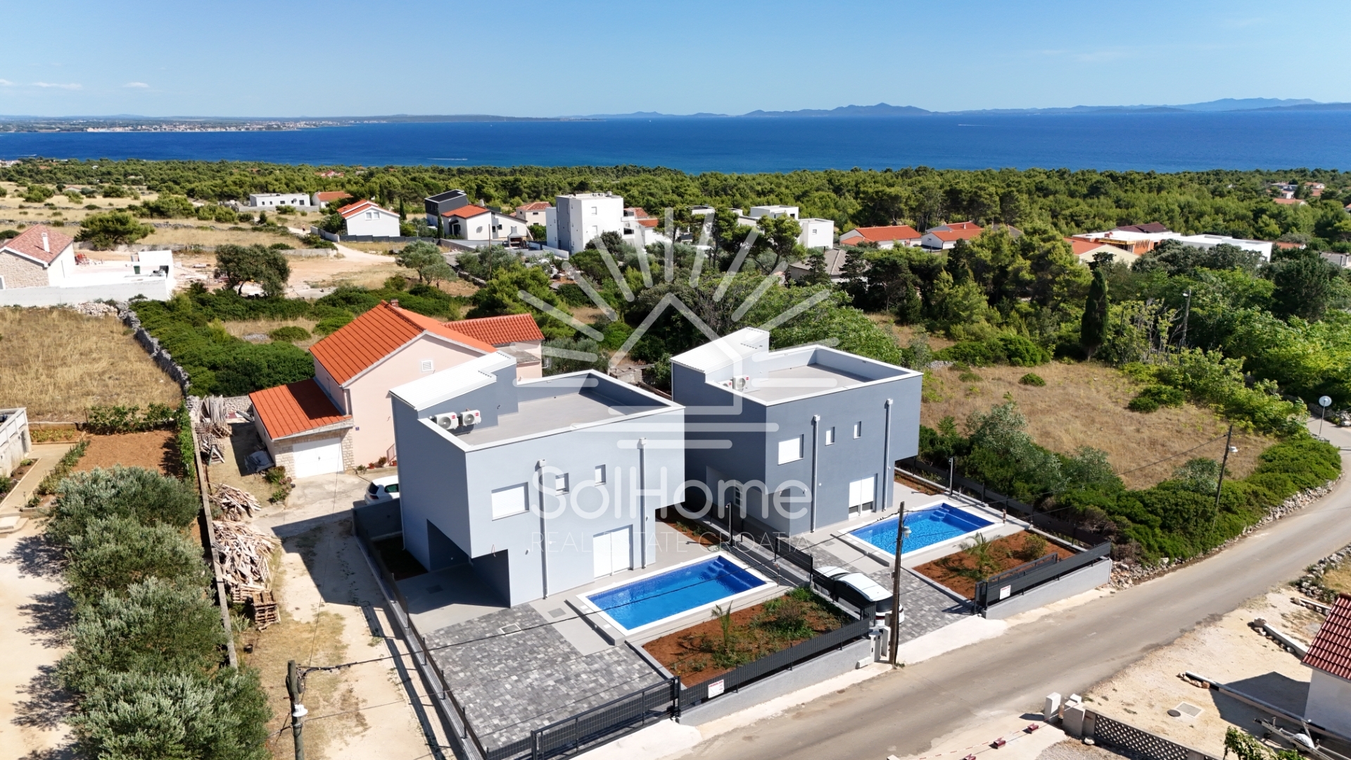 Ekskluzivna prilika: kuće iz snova u blizini Zadra, Hrvatska, s panoramskim pogledom na more i bazenom.