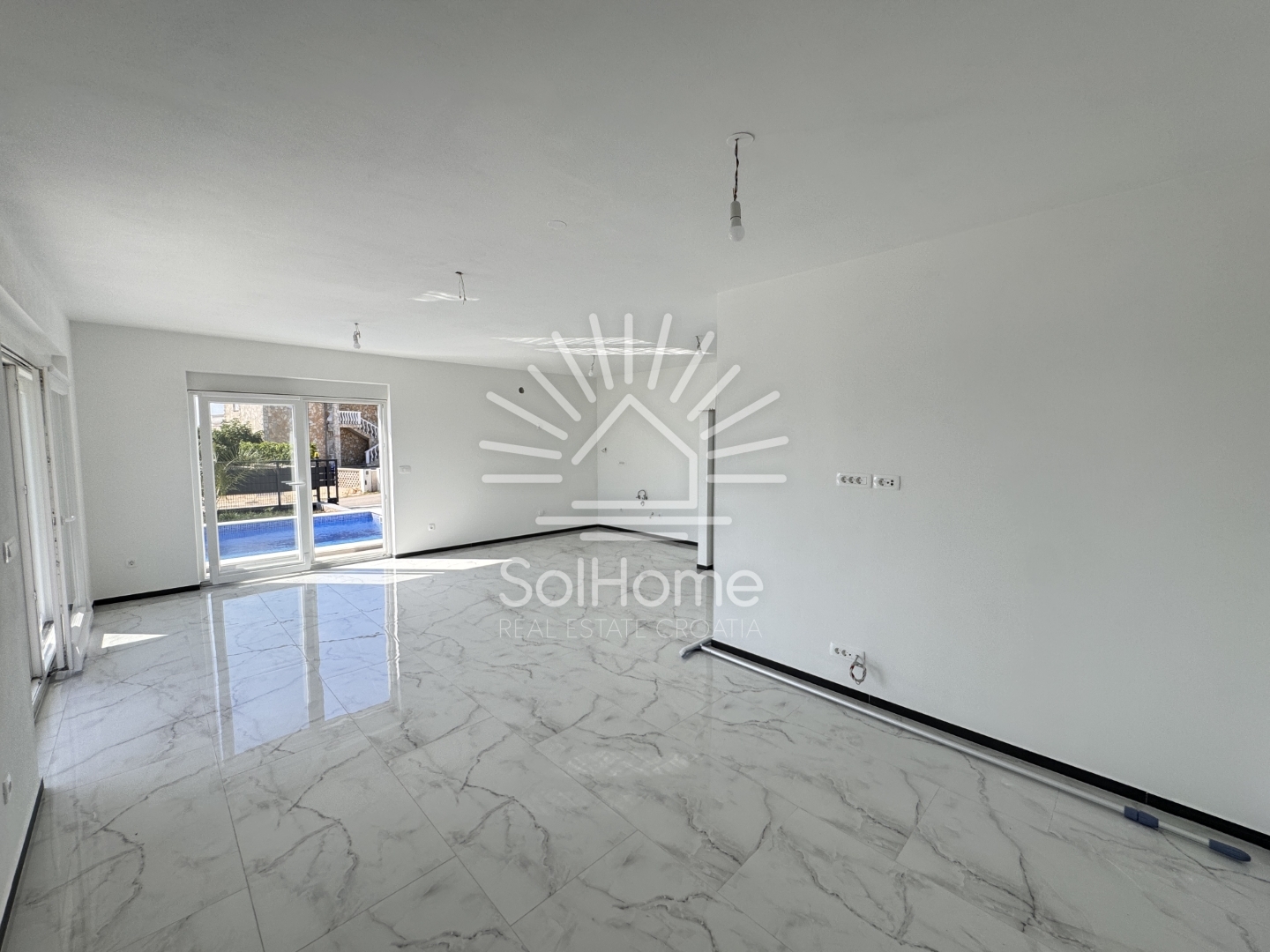 – Bazen od 25 m² s mozaičnim pločicama i pripremom za toplinsku pumpu