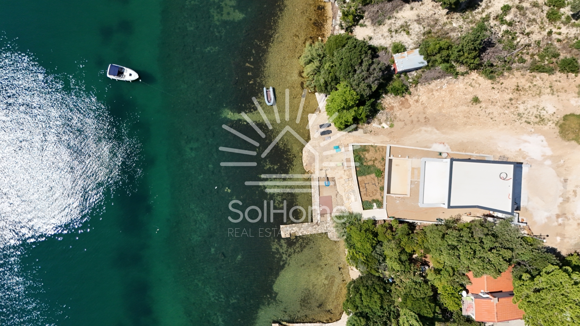 Pažljivo uređeni vrt zasađen je mediteranskim biljem i ima stepenište koje vodi izravno do mora i plaže, gdje možete uživati u potpunoj privatnosti i opuštanju. Uz plažu se nalazi i praktična ostava od 8 m² za sigurno spremanje ležaljki, SUP-ova i druge opreme za kupanje.