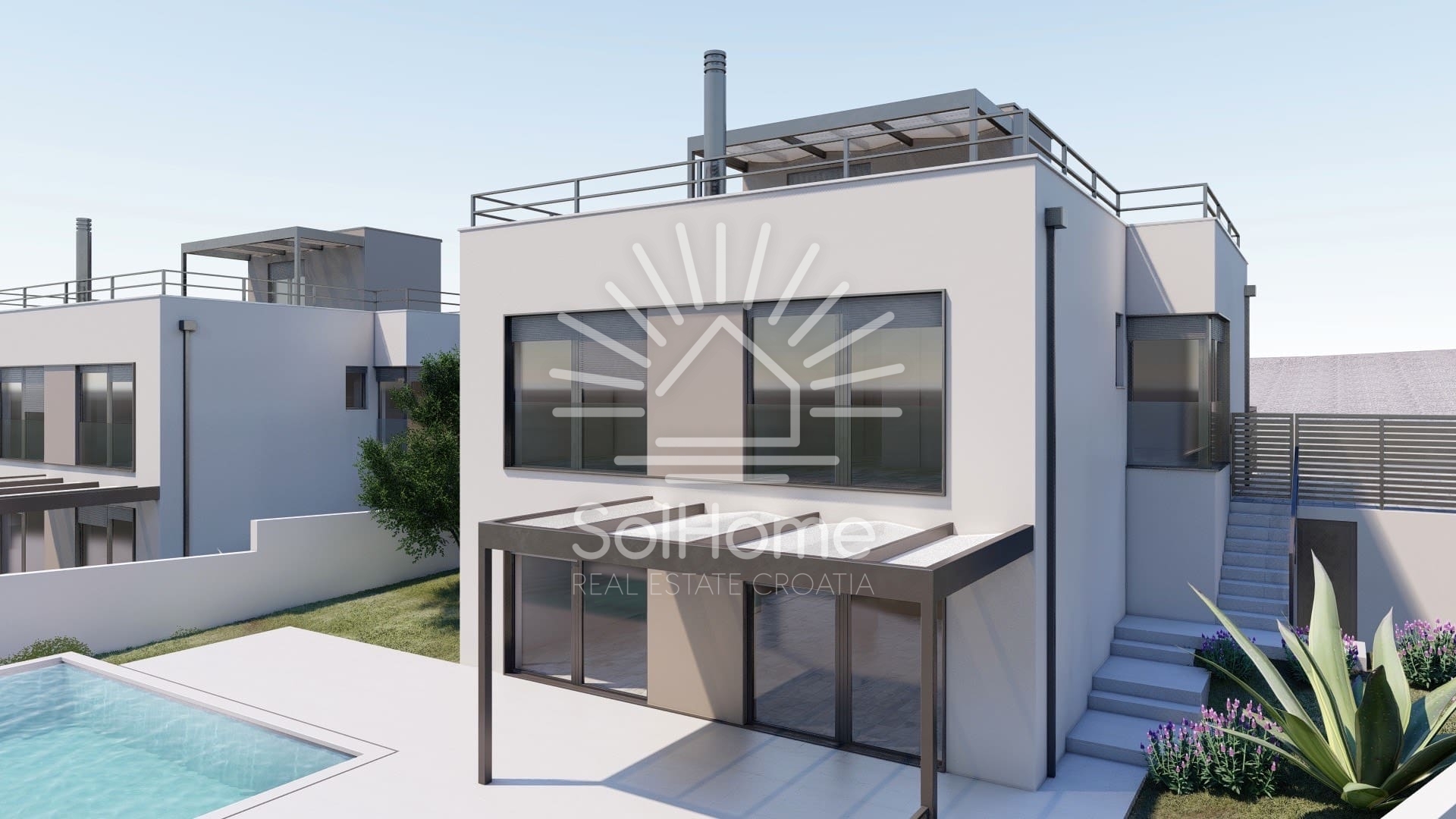 Ova vrhunska vila nudi savršen spoj modernog dizajna, kvalitete i udobnosti. Smještena u drugom redu do mora, idealna je za miran život ili sigurnu investiciju s izvrsnim potencijalom za iznajmljivanje.