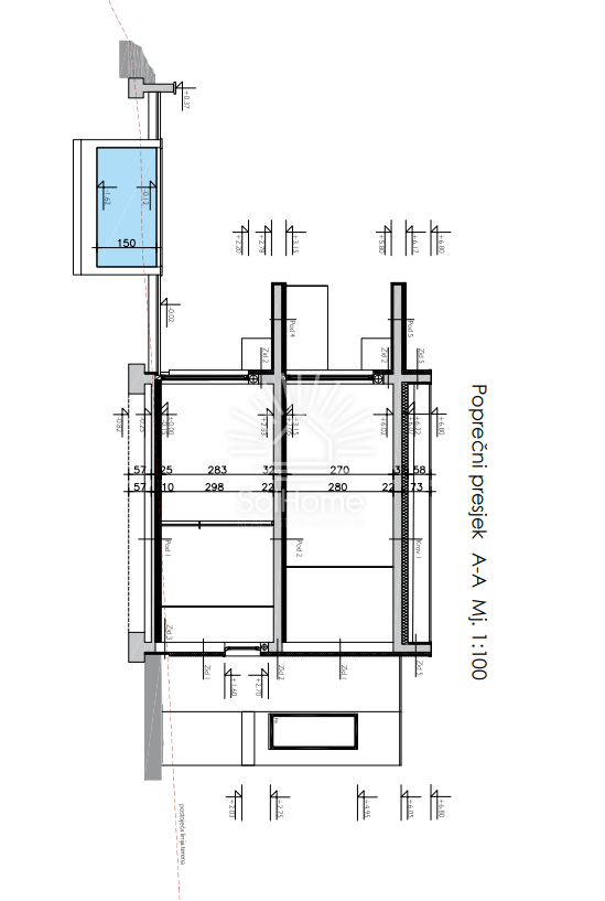 Podrum: Dnevni boravak s blagovaonicom, kuhinja, kupaonica i spavaća soba
